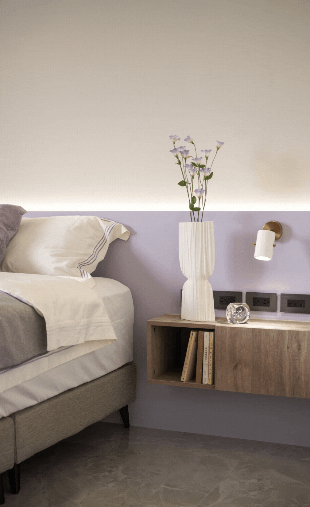 從玄關起筆,木質櫃體以簡約線條導入一種節奏;